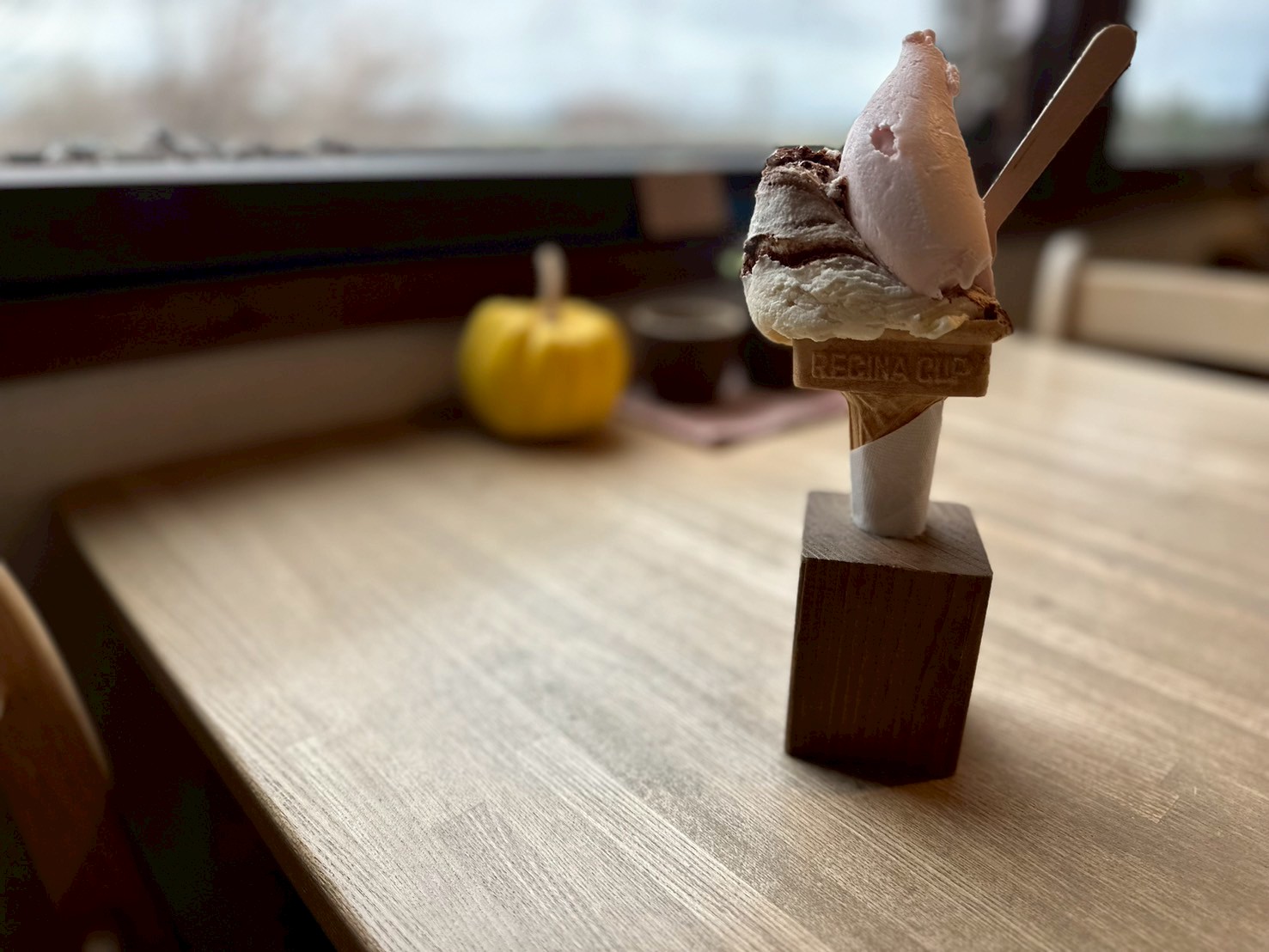 このほか、牧場牛乳で作ったソフトクリーム(こちらも濃厚なのに後味さっぱりと評判です)や、熱いエスプレッソをかけていただくアフォガート、手作りの焼き菓子やパン類まで揃っており、カフェとしてゆったり過ごすこともできます。どれもこれも魅力的で、ついつい欲張ってしまいそうになりますよ。
